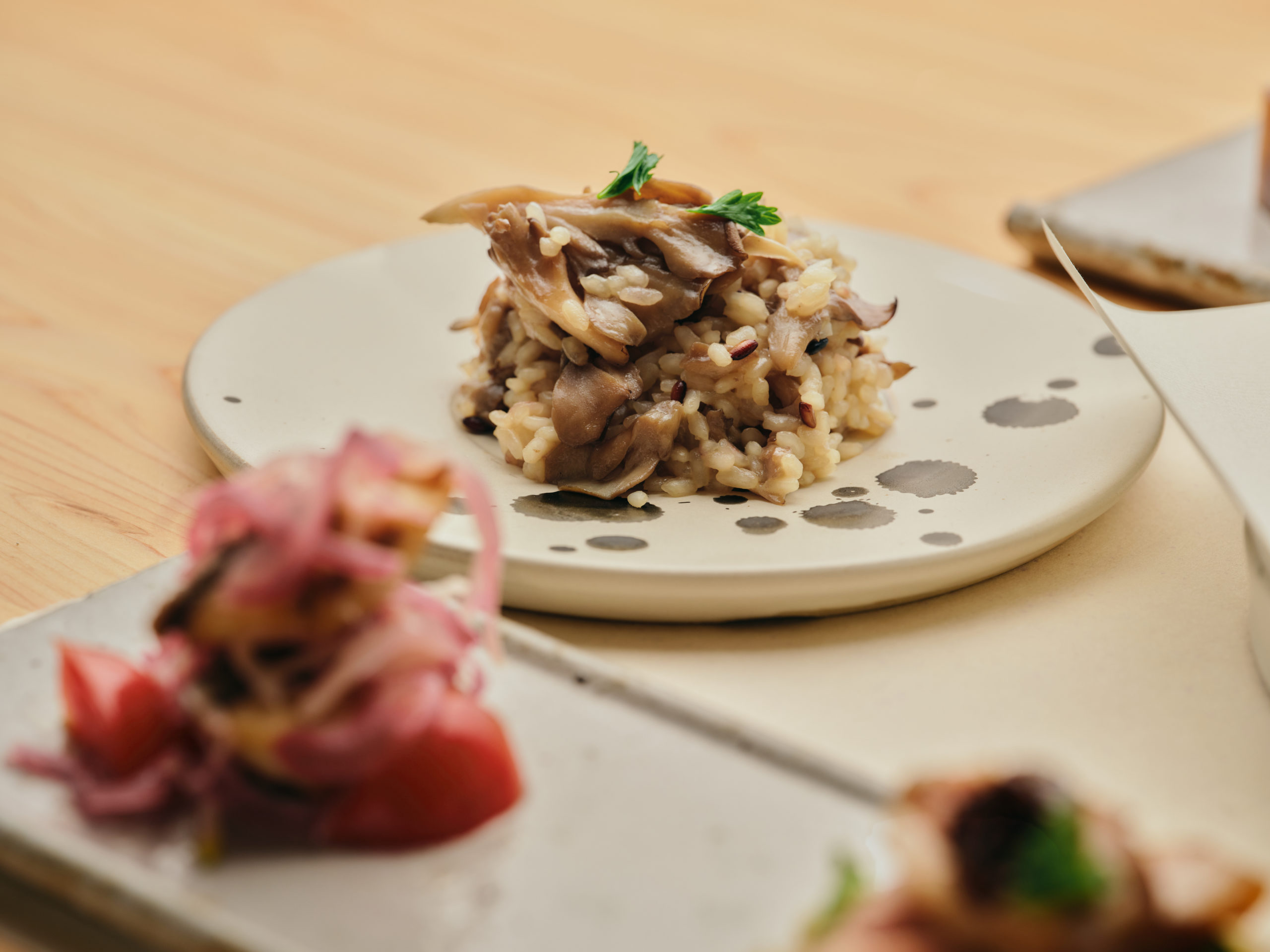 器やカトラリーにもこの土地ならではの工芸品を使用。心地よい空間で、里山の恵みをお楽しみください。