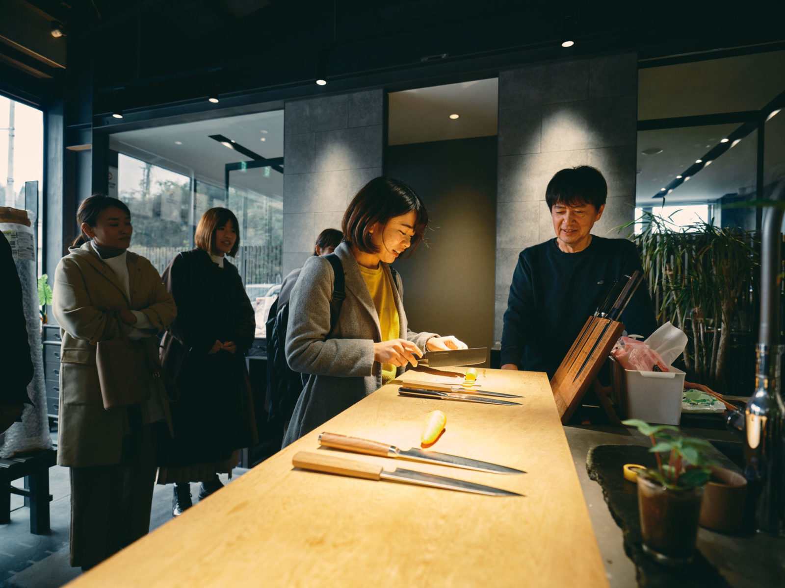 ものづくりの職人を知り、その想いに触れ、裏側に隠されたストーリーを知って、ファンになる。いつもより一つ解像度をあげた目線で商品選びができるのも、このツアーだからこそ。希望があれば、各工房の包丁をその場で購入することもできます。職人さんから直接ものづくりについて学べる特別な体験をしに、ぜひいらしてみてくださいね。