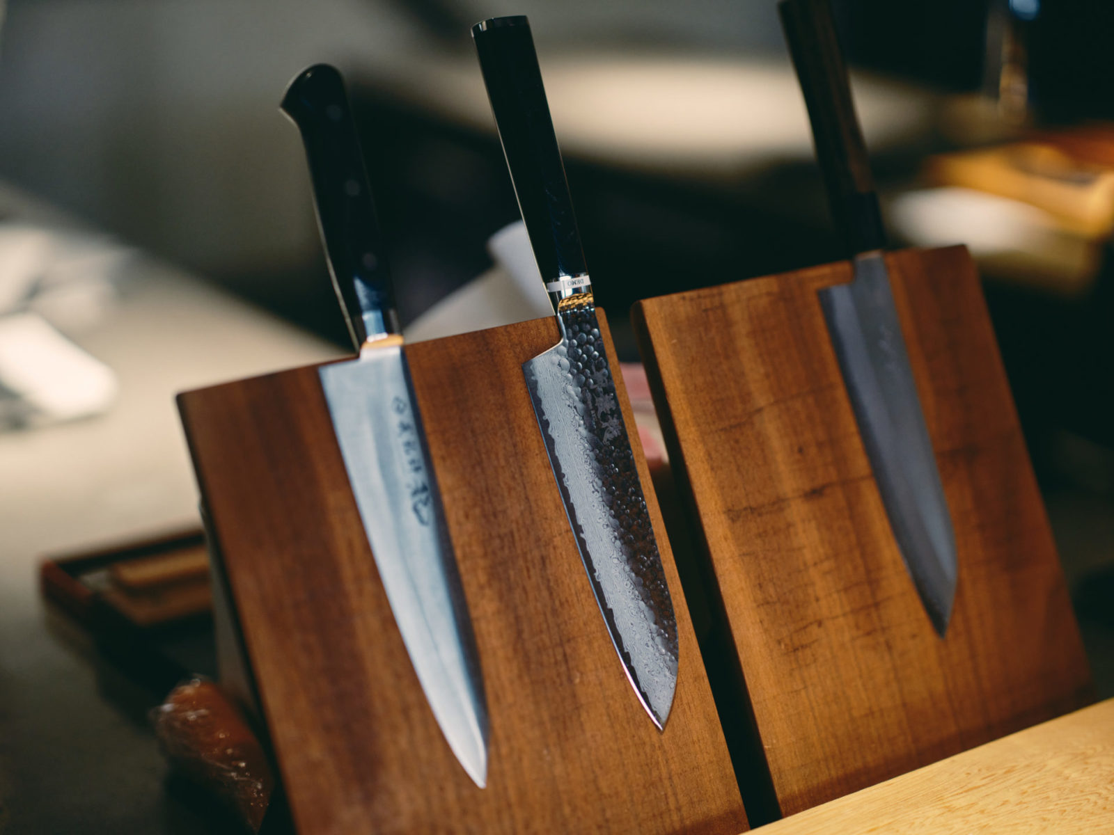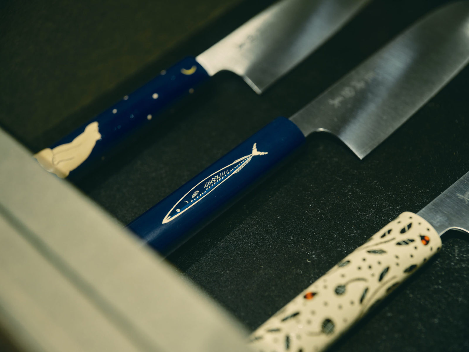 最初に向かうのは、和包丁の専門店「柄と繪 / etoe」。山謙木工所の四代目・山本拓哉さんと蒔絵師の山本由麻さん、職人夫婦が営むショップです。ツアーでは、ご主人様または奥様のいずれか(うち一人)に直接案内いただきます。