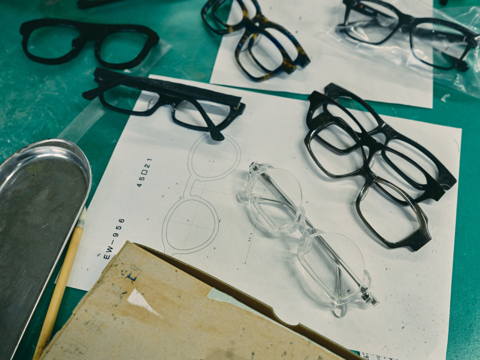 最終的なデザインはいくつもある型の中から、あなたに似合うものを竹内さんが選んで製作。あとはどんな眼鏡になるのか、自宅に届くのを楽しみに、約半年ほどお待ちいただきます。