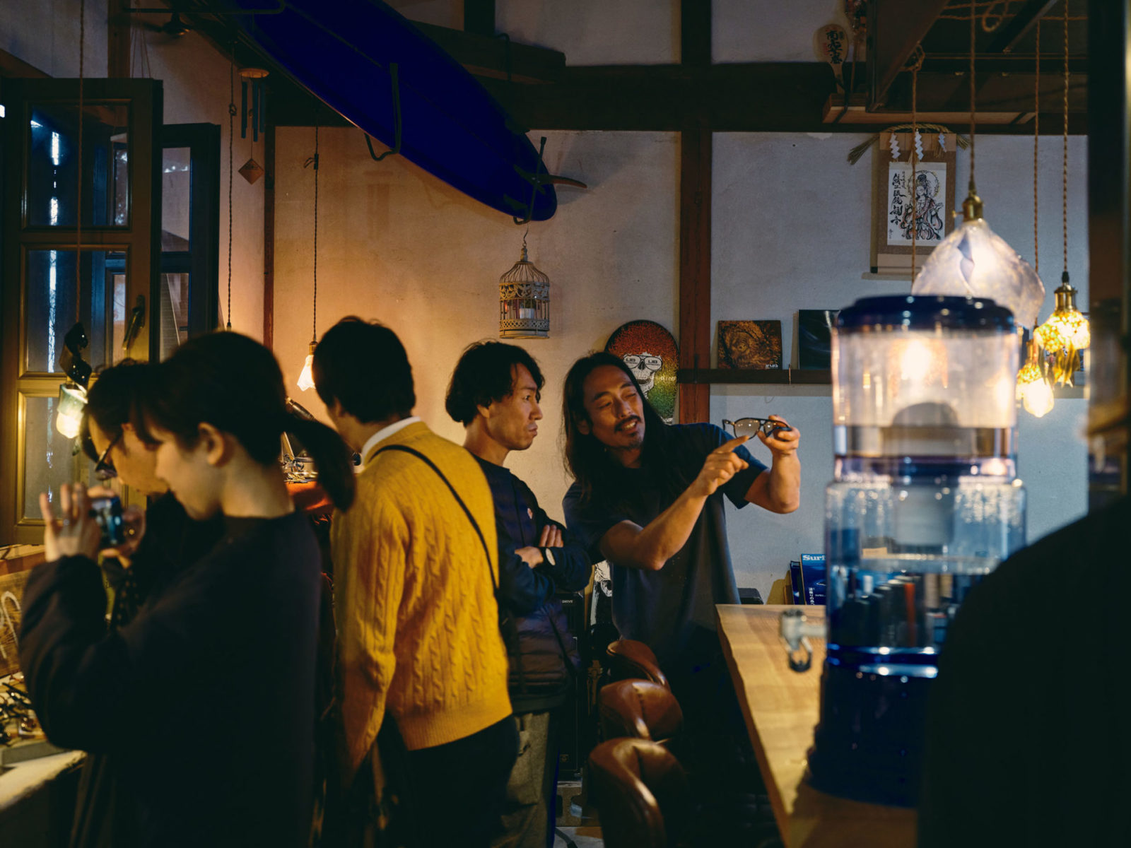 見学のあとはギャラリー&カフェの「奇人眼鏡展」に移動。ギャラリーでは竹内さんがこれまで作ってきた様々な眼鏡を見たり、実際にかけてみることができます。ゆっくりとカフェでくつろぎながら、どんな眼鏡をつくるのか竹内さんと相談。じっくりと「方向性」を決めていきます。
